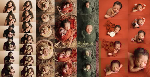 You will have full access to my newborn prop collection for me to style your session; every family receives custom tailored setups according to your preferred aesthetic. Gallery of images you will select your order from will include nakey baby poses on beanbag, wrapped and unwrapped prop poses, parents and siblings shots.